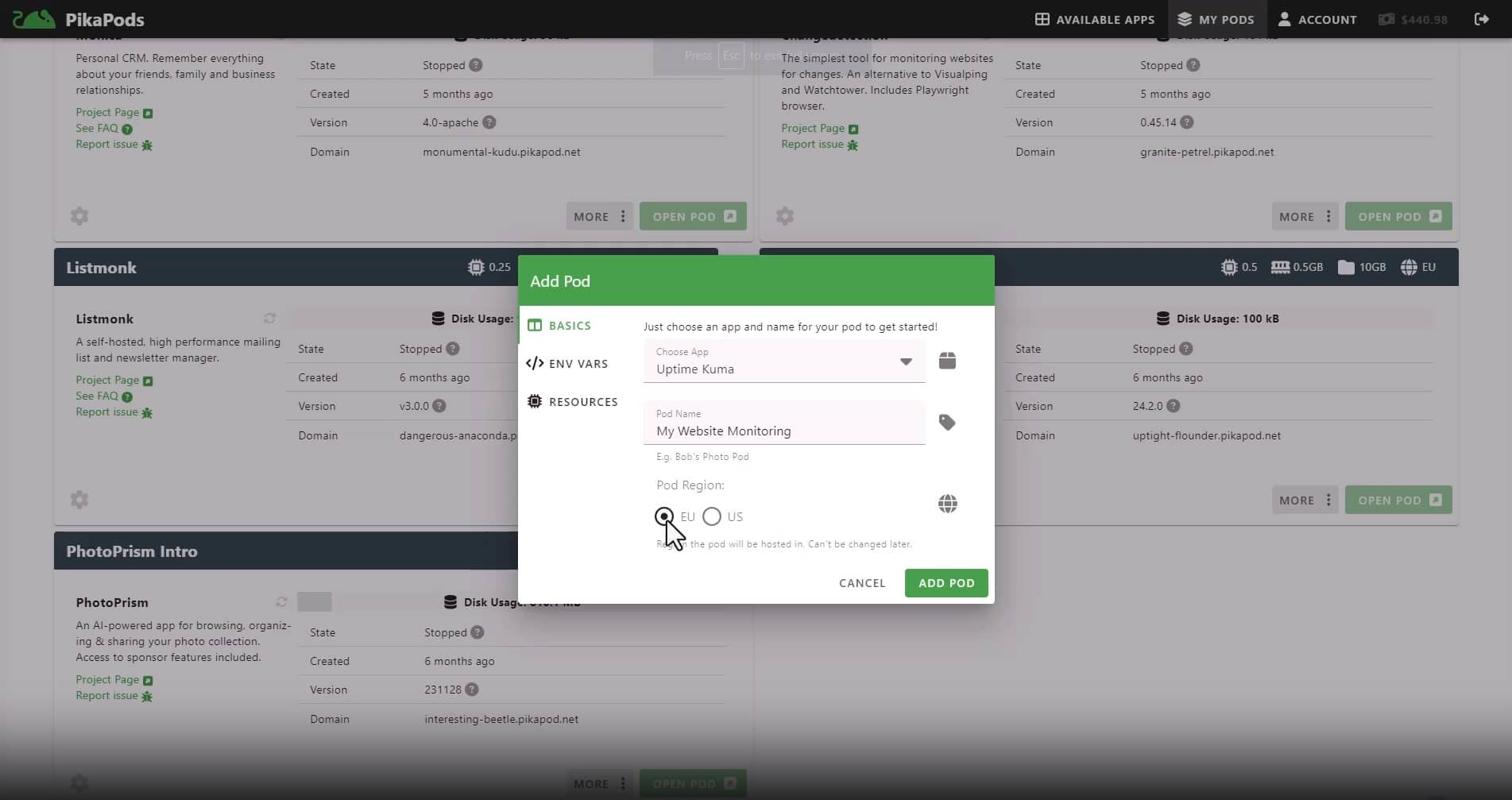 Before we start, make sure you’re logged into PikaPods. Not a member yet? Signing up is easy, plus you’ll get $5 in free credit to kick off your pod journey. Ready to set up? Sign in or sign up here.