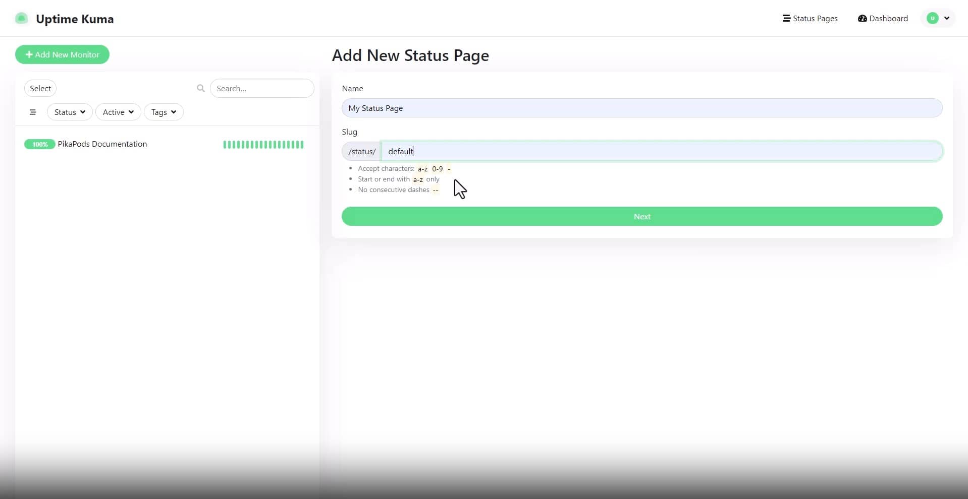 - Name Your Monitor (e.g., “PikaPods Documentation”).